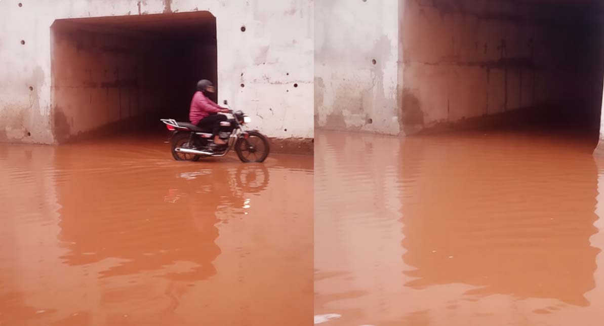 വേനല്മഴയില് പെരിയ ബസാര് ദേശീയപാതയില് വെള്ളക്കെട്ട്