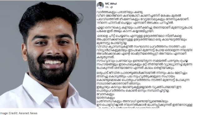 വിവാഹവാഗ്ദാനം നല്കി യുവതിയെ പീഡിപ്പിച്ച കെ എസ് യു ജില്ലാ പ്രസിഡണ്ടിനെതിരെ കേസ്