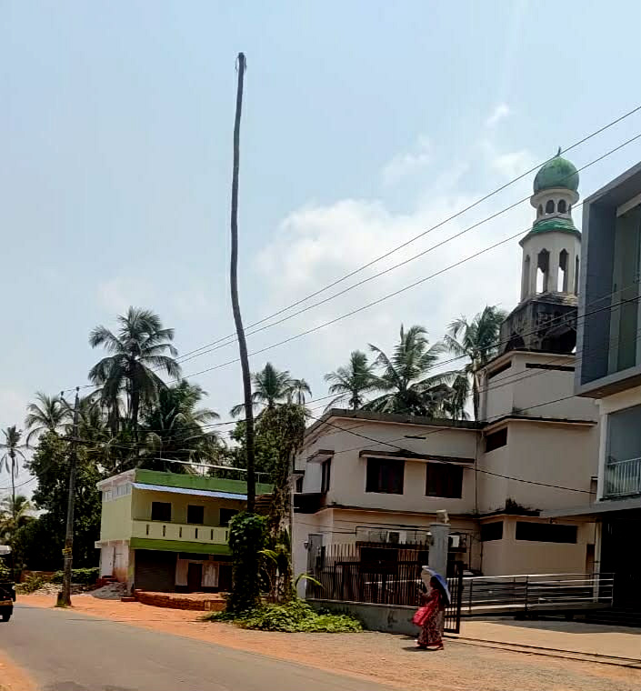 അപകടഭീഷണിയായി ഉണങ്ങിയ തെങ്ങ്